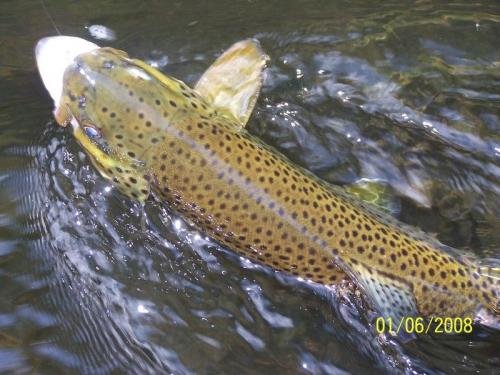 Hol pstraga z plani zaraz ponizej mostu. Zagryzł malutka nimfke podana pod prad( łowienie na upatrzonego gdyż bardzo dokładnie widać spływajace nimfki i moment brania, a rybke od tyłu mozna podej¶ć naprawde blisko :) )