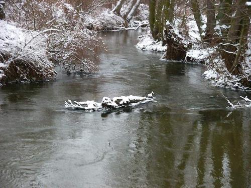 Podwarszawska rzeczka w zimowej scenerii.