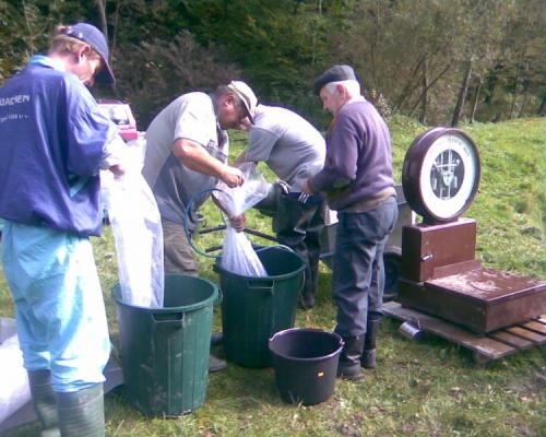 Konfekcjonowanie pstrąga potokowego do zarybień.