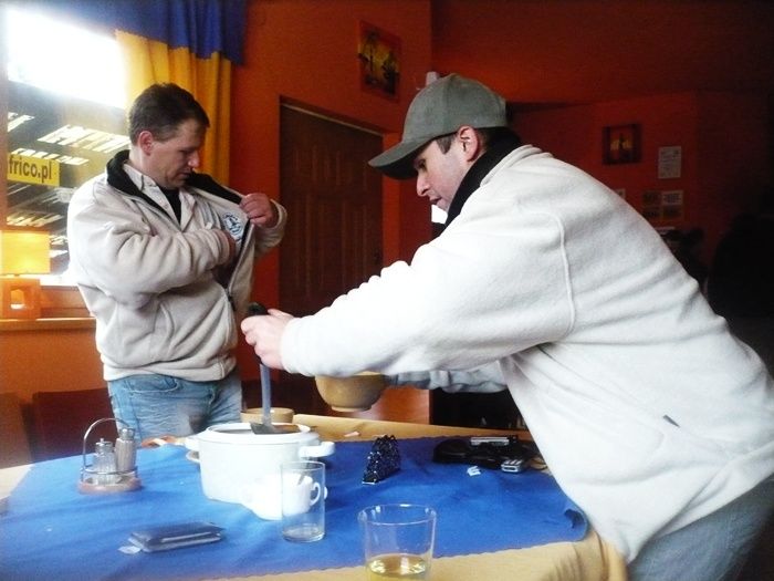 Zmarznięci koledzy drużyny czeskiej rozgrzewali się gor±c± pomidorow± zup±.