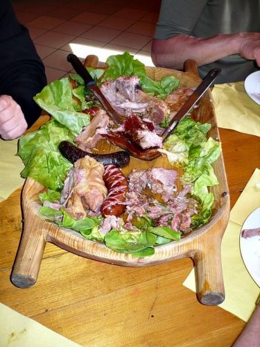 Tak wyglądało jedzenie na naszej imprezie. Półmisek już prawie pusty. Jedzenie było naprawdę wyśmienite. Na półmisku znajdowały się żeberka, golonko, kiełbaska, boczek, kaszanka i wiele jeszcze wspaniałości.