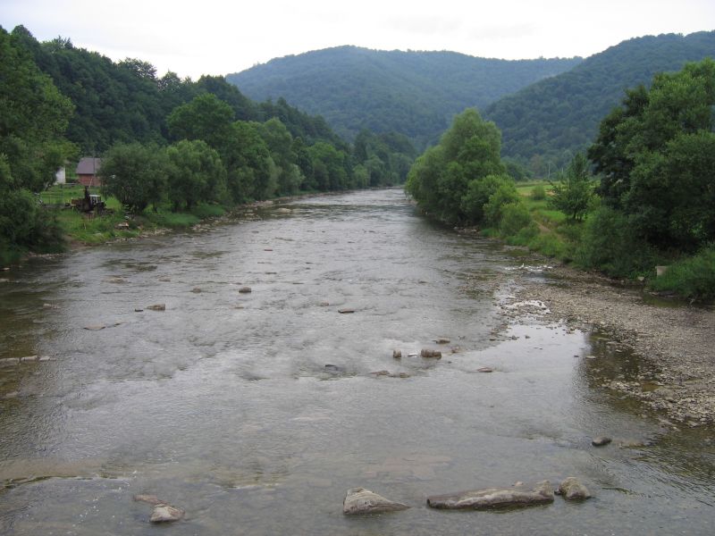 Widok na rzekę z mostu w Terce. Tego dnia mimo intensywnego deszczu, woda była bardzo niska. Dopiero nieco póĽniej sie zm±ciła...