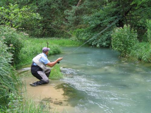 Na stanowisku poniżej głębokiego zakola. W czystej wodzie lubi± tam wychodzić i wła¶nie wtedy tak było...