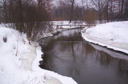Pierwsza kładka na rzece w miejscowo¶ci Poczesna - naprzeciw Ko¶cioła.