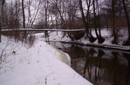 Druga kładka na rzece poniżej miejscowo¶ci Poczesna. To wła¶nie w tym miejscu przed zatruciem rzeki można było podziwiać stoj±ce w nurcie lipienie.