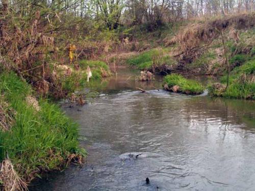 Typowe oberwanie brzegu na zakręcie, jedno z mniejszych.