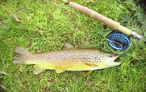 Pstrag zlowiony na sucha muche na rzece Test w Angli