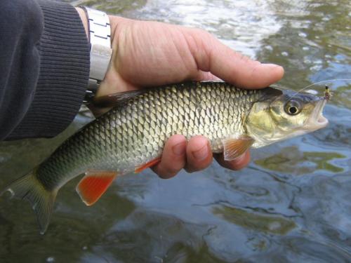 Rybka skusiła się na imitacje chrusta w domku .Tego klenika oraz wiele małych potokowców połowiłem na nimfki ale konkretnych rybek zero ale jak te maluchy dorosn± ..............