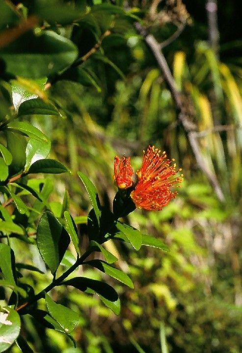 Piekne rodzime drzewo z czerwono kwitnacymi kwiatami, bardzo niestety narazone na szkodniki - possum'y (torbacz Palanka Kuzu); jest ich ok. 70 mln.